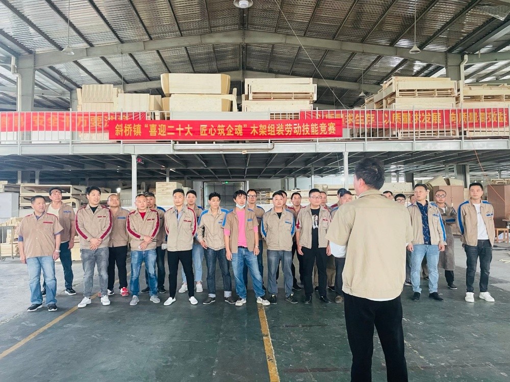 為提升職工勞動技能水平,形成創先爭優、比學趕超的競爭氛圍,一場以“喜迎二十大 匠心筑企魂”為主題的2022年斜橋鎮木架組裝勞動技能競賽在恒森公司組裝車間拉開戰幕,來自組裝一車間、二車間和打樣車間的26名技能型員工報名參賽。