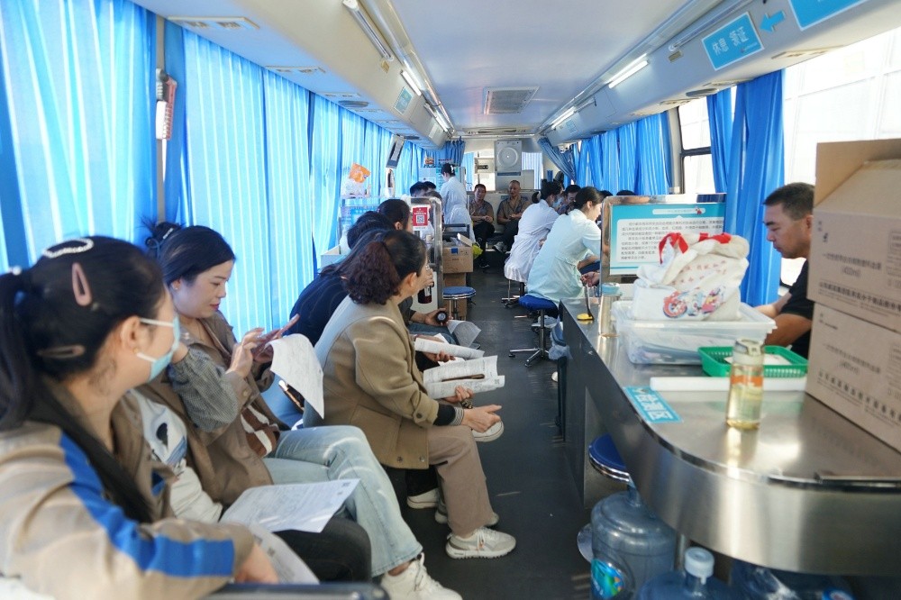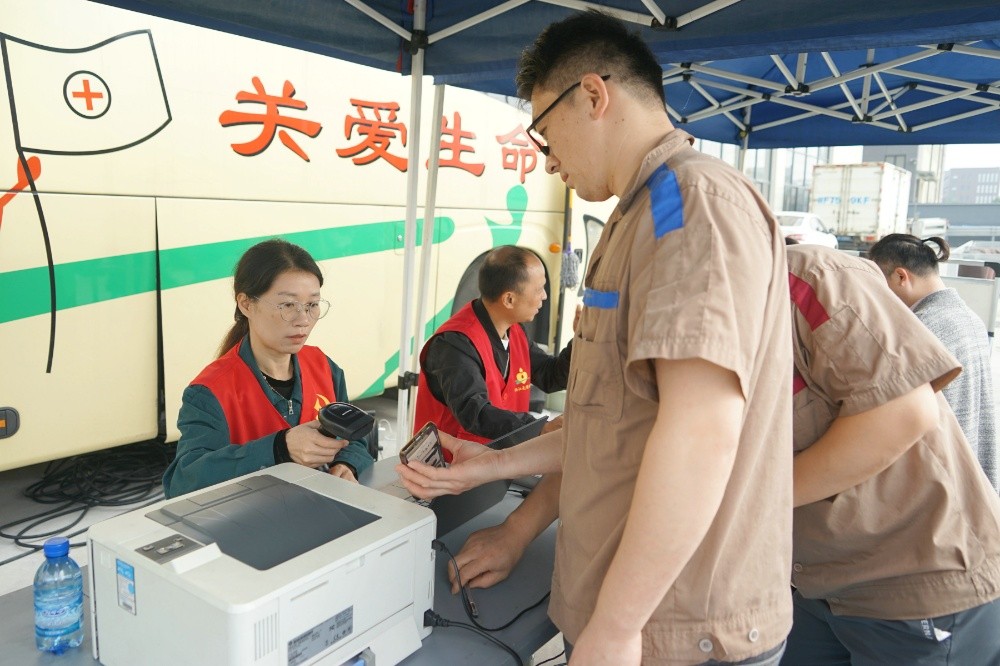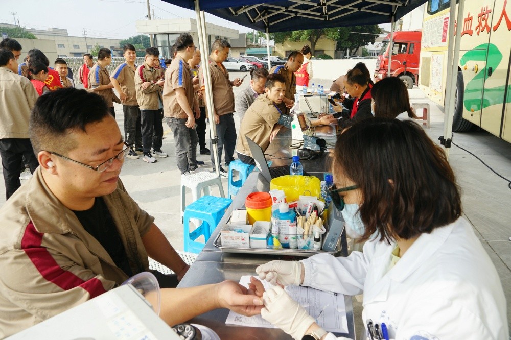 當天上午,整個廠區(qū)洋溢著愛的暖流。只見大家在采血車前有序填寫獻血登記表、測量血壓、征詢體檢、初篩采樣。隨后合格者上車獻血,奉獻愛心。