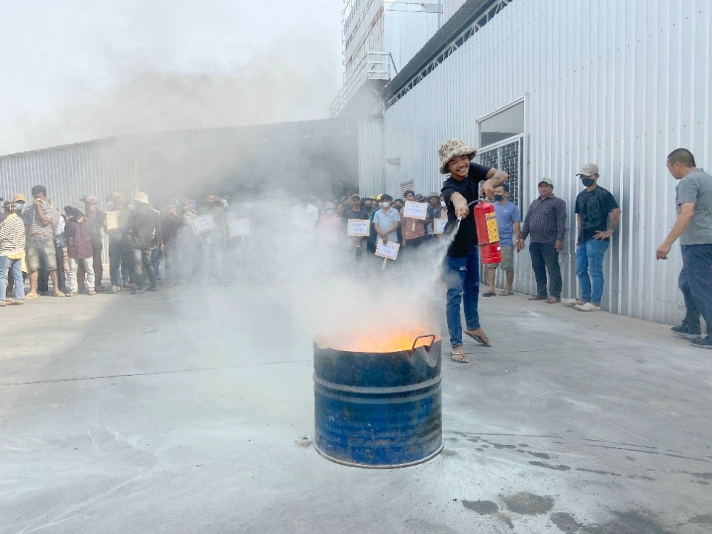 恒森公司柬埔寨廠區(qū)現(xiàn)有員工450人,這次培訓(xùn)分上、下午兩場進行,著重宣傳和強調(diào)消防安全和道路交通安全的重要性和必要性,并就消防器材使用進行了現(xiàn)場講解與演練。