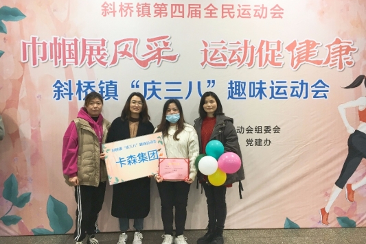 3月5日下午,2021年斜橋鎮“巾幗展風采 運動促健康”“慶三八”趣味運動會在慶云村文化活動中心舉行。根據鎮婦聯的要求和公司婦聯的安排,我司由沈晨亞、朱曉華、周燕、張娟琴4人組隊出征。??? 隊員們參加了“四人五足”、“...