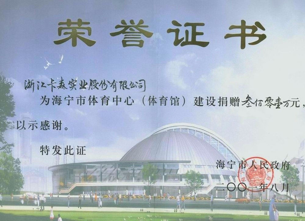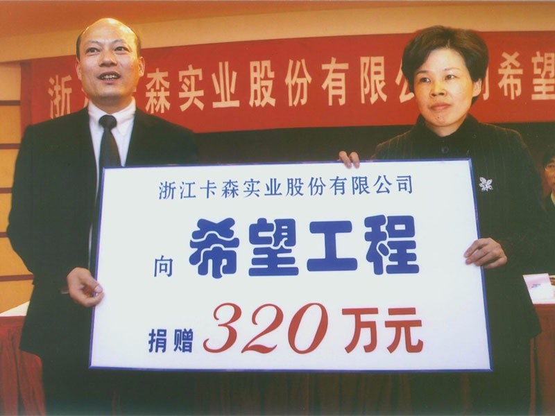 ▲ 2007年,海寧市創建慈善基金,集團設立卡森留本冠名基金1500萬元,至今累計捐贈545萬元,用于助困、助學、助教、助殘;